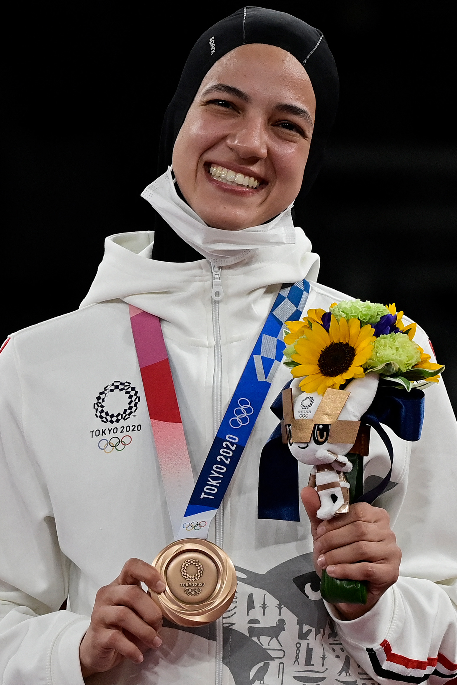 وفازت هداية ملاك بالميدالية البرونزية في وزن تحت 67 كجم.